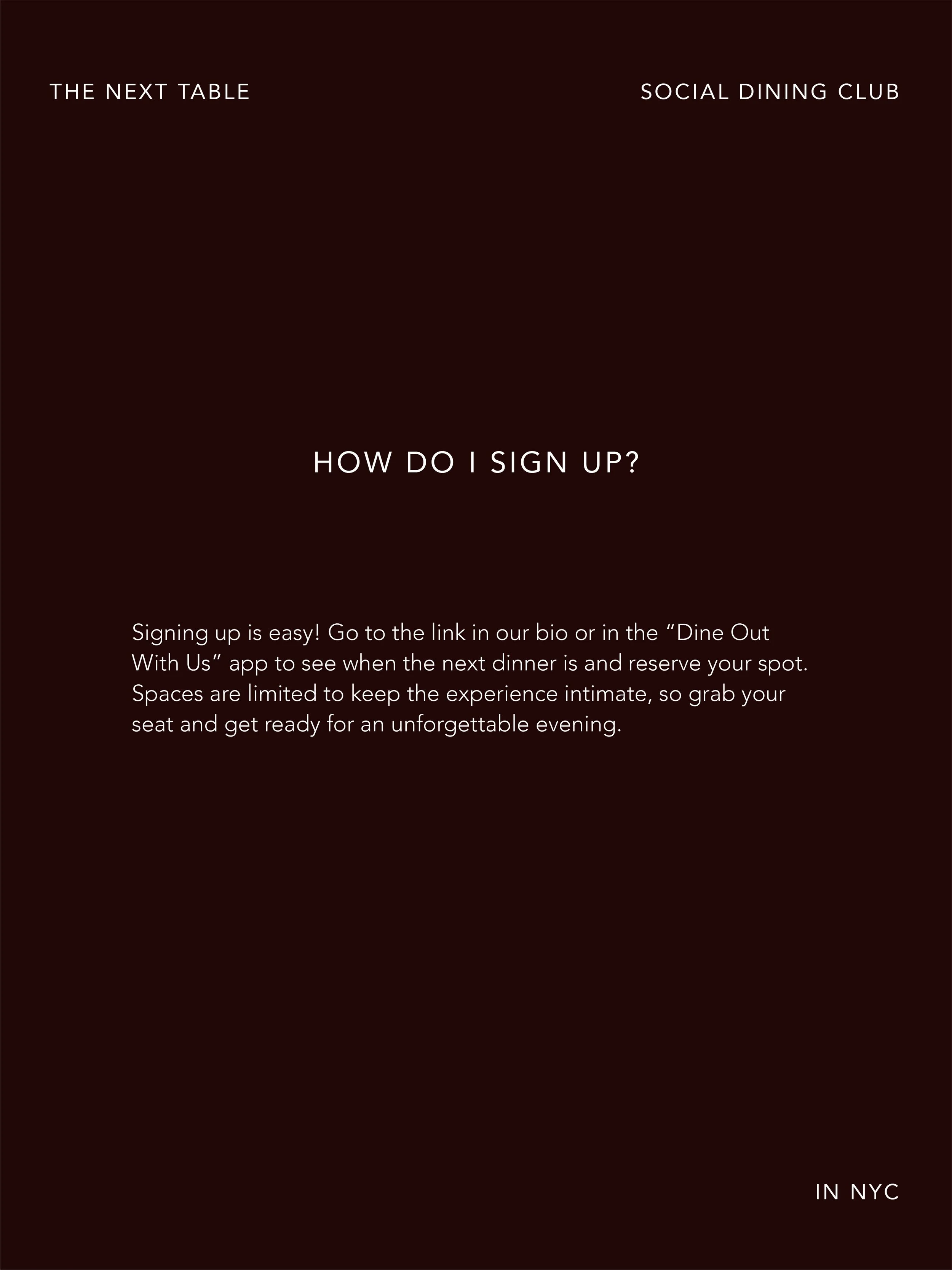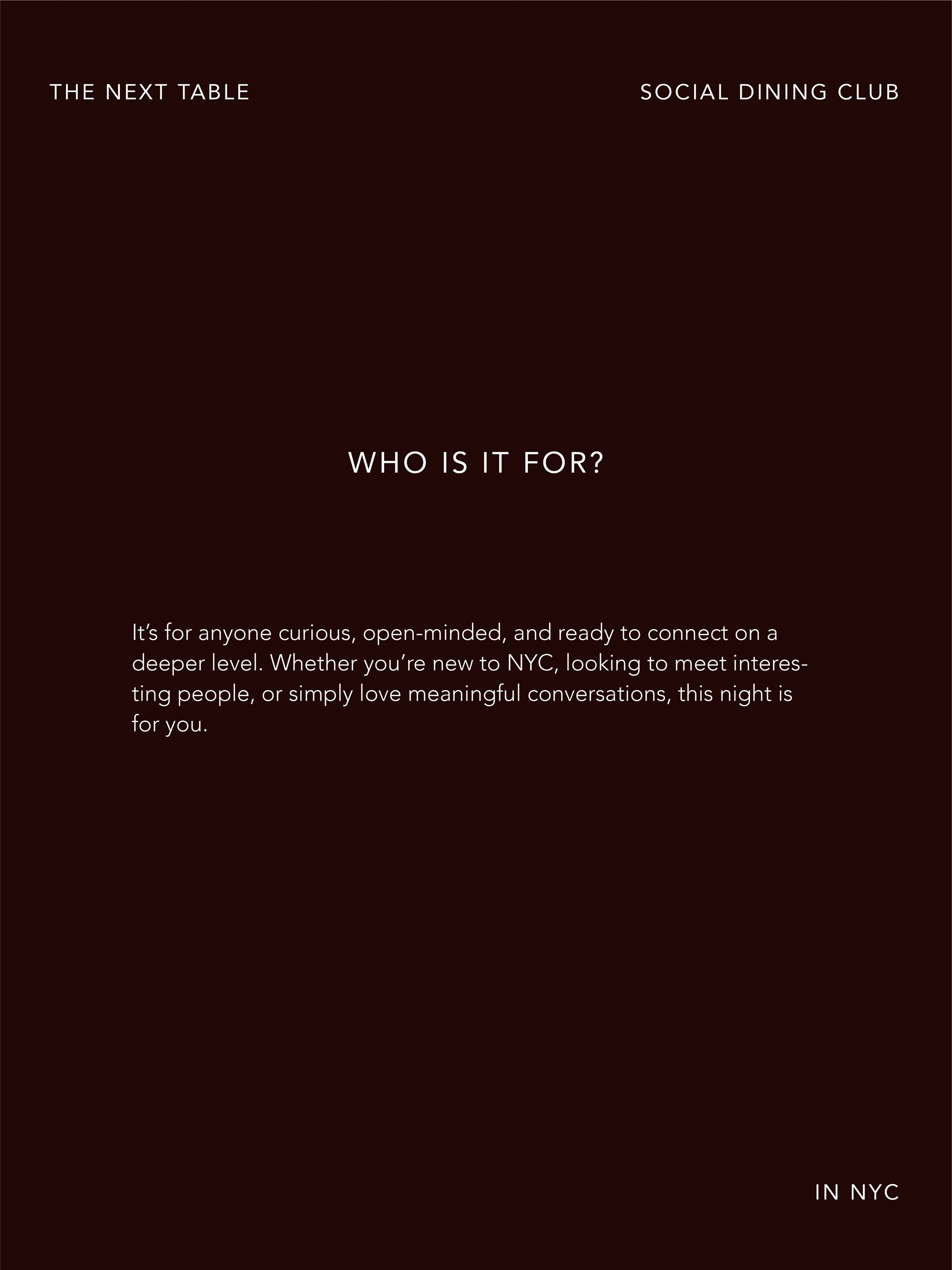 The Next Table is the sister brand of The Girl Next Door, a social dining club created for a broader audience. I developed its identity to visually connect both brands while elevating its elegance.